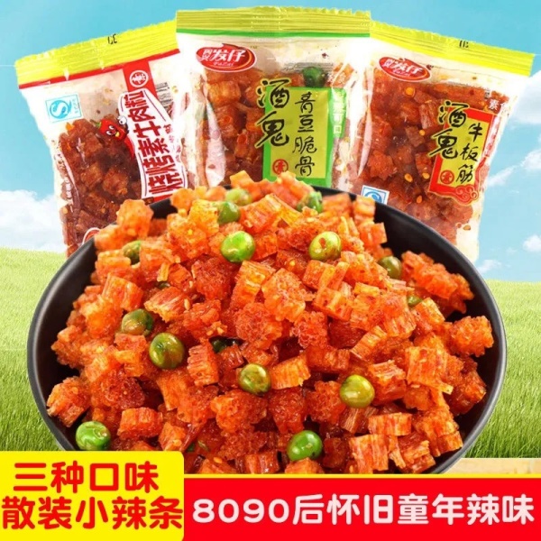 发仔酒鬼青豆脆骨8090怀旧香辣麻辣零食散装网红辣条整箱大量批发