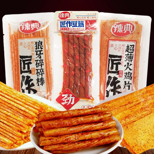 包邮新品辣典匠作豆筋超薄火鸡片狼牙碎碎棒香辣辣条休闲零食