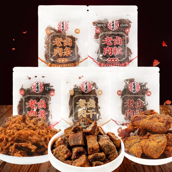 包邮宏香记老卤系列老卤肉干肉粒肉条卤香五香甜辣肉干零食小吃