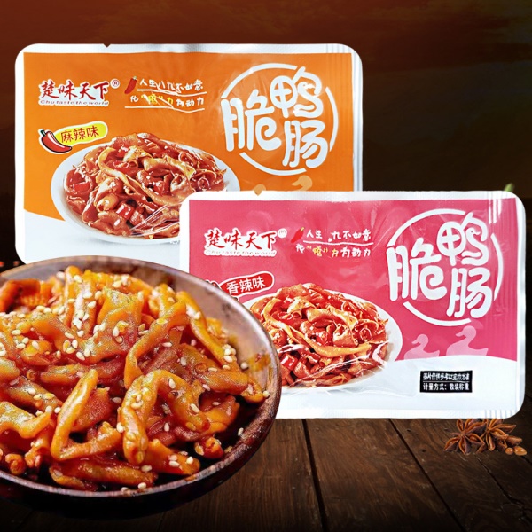 楚味天下 麻辣香辣 脆鸭肠开袋即食休闲类卤味零食散称小包5斤/箱
