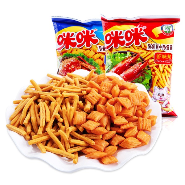 爱尚咪咪虾条整箱批发蟹味粒8090怀旧零食大礼包膨化食品薯条散装