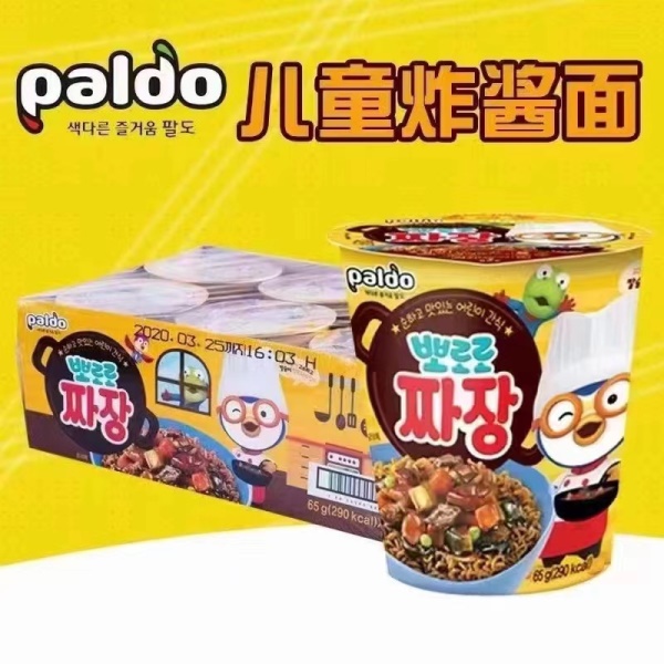 韩国八道啵乐乐小企鹅炸酱面杯面65g*6杯速食paldo干拌面