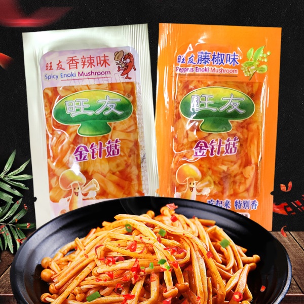 旺友金针菇5斤独立小包装香辣味藤椒味下饭菜批发速食纤维