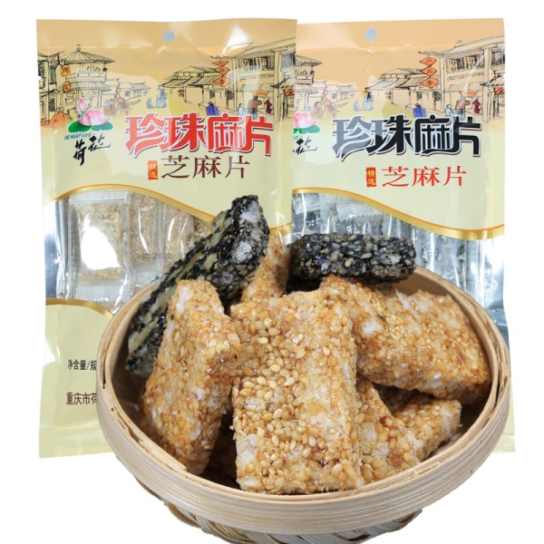 荷花芝麻片130g重庆特产江津荷花牌珍珠麻片黑白两色休闲零食小吃