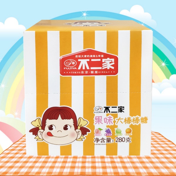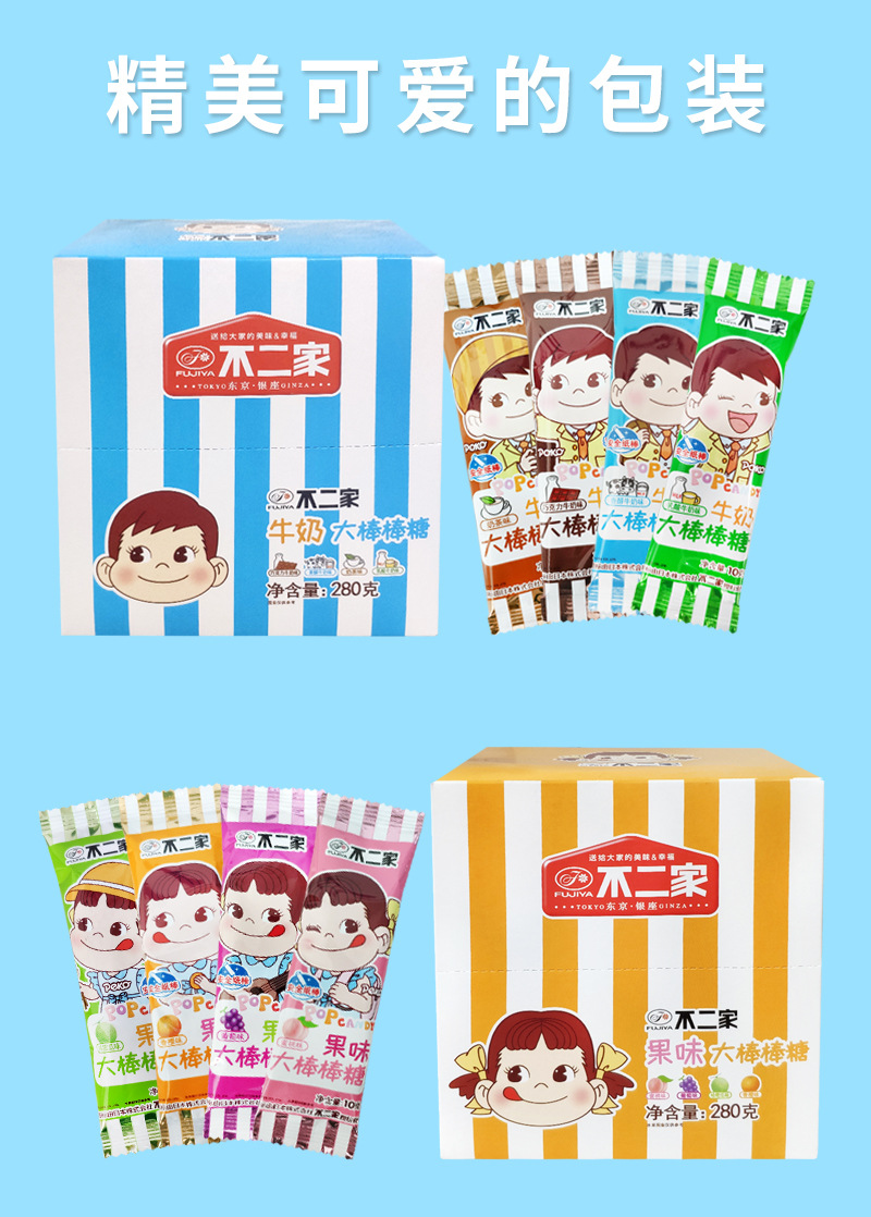 不二家10g大棒棒糖28支盒装水果味牛奶味棒棒糖不二家吸吸冻