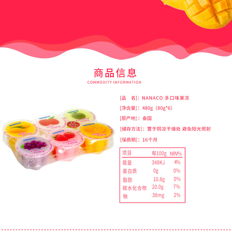泰国进口NANACO果冻布丁果味型480g网红休闲零食小吃芒果橙子草莓