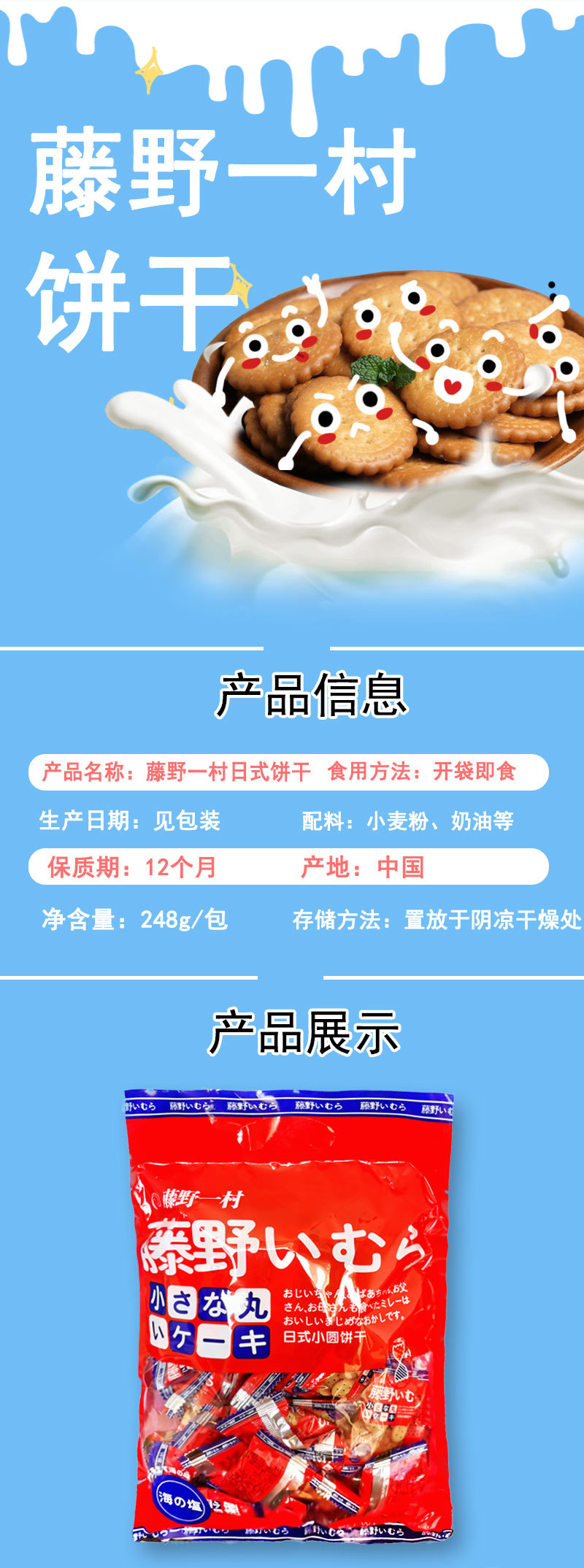 藤野一村 日式小圆饼干 海盐口味248g/袋 休闲小饼干 独立包装