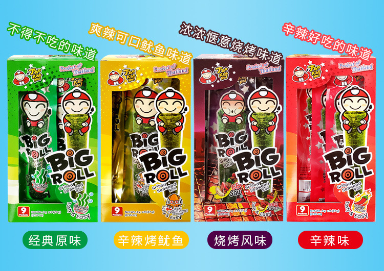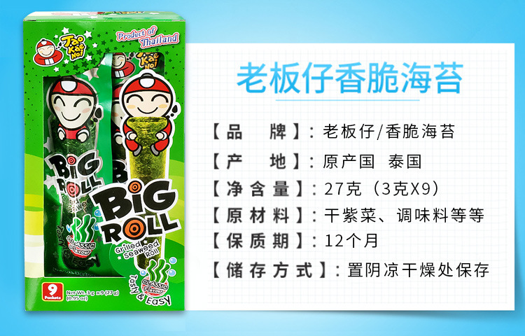 5月泰国进口老板仔海苔卷27g盒香脆紫菜原味脆海苔儿童食品 现10