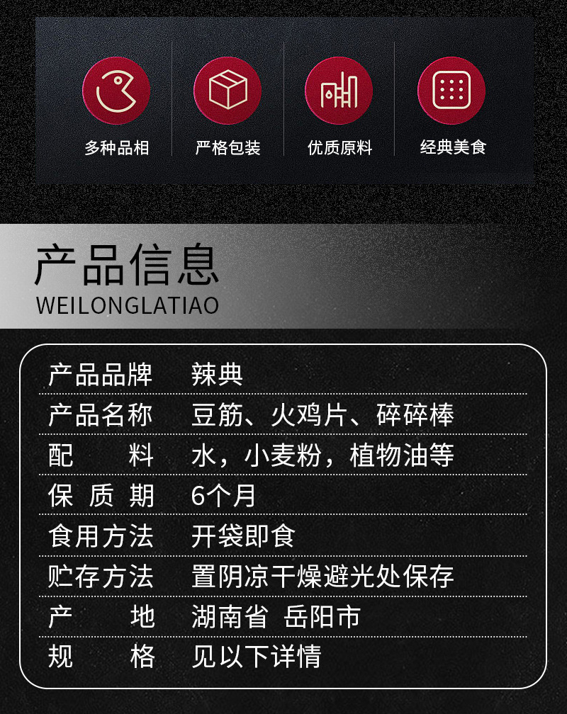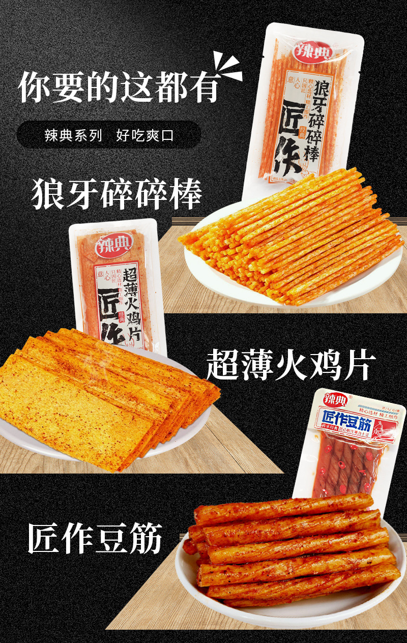 包邮新品辣典匠作豆筋超薄火鸡片狼牙碎碎棒香辣辣条休闲零食