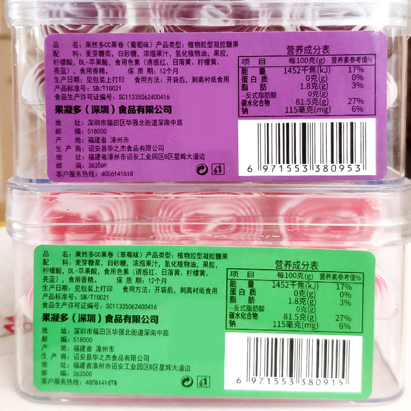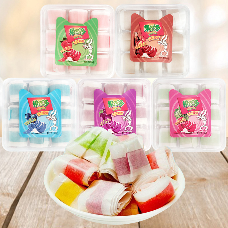果然多糖果CC果卷160g葡萄西瓜蓝莓果味老酸奶软糖蜜之果条休闲