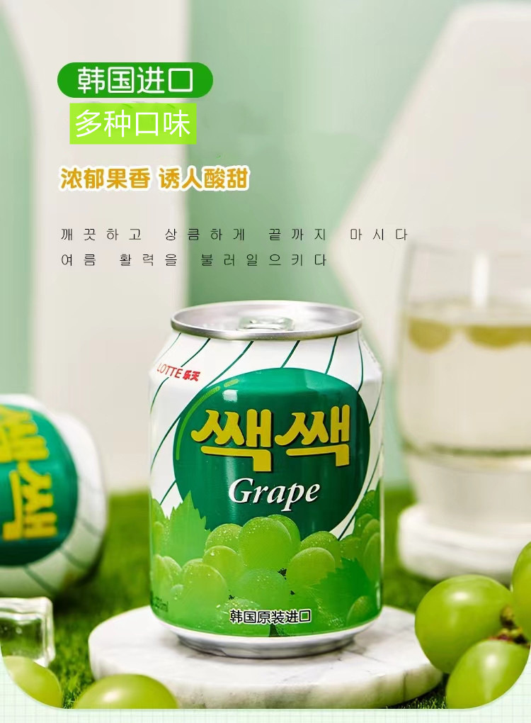 整箱72罐批发韩国进口LOtte乐天饮料 葡萄草莓果肉水果味果汁饮品