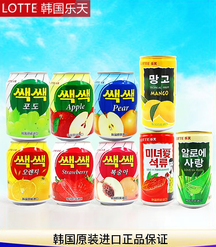 韩国进口饮料乐天粒粒橙葡萄梨汁草莓238ml果汁饮料饮品餐饮批发