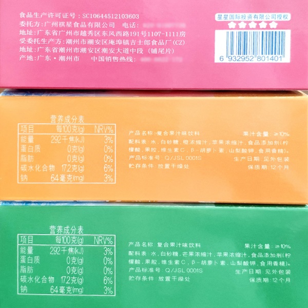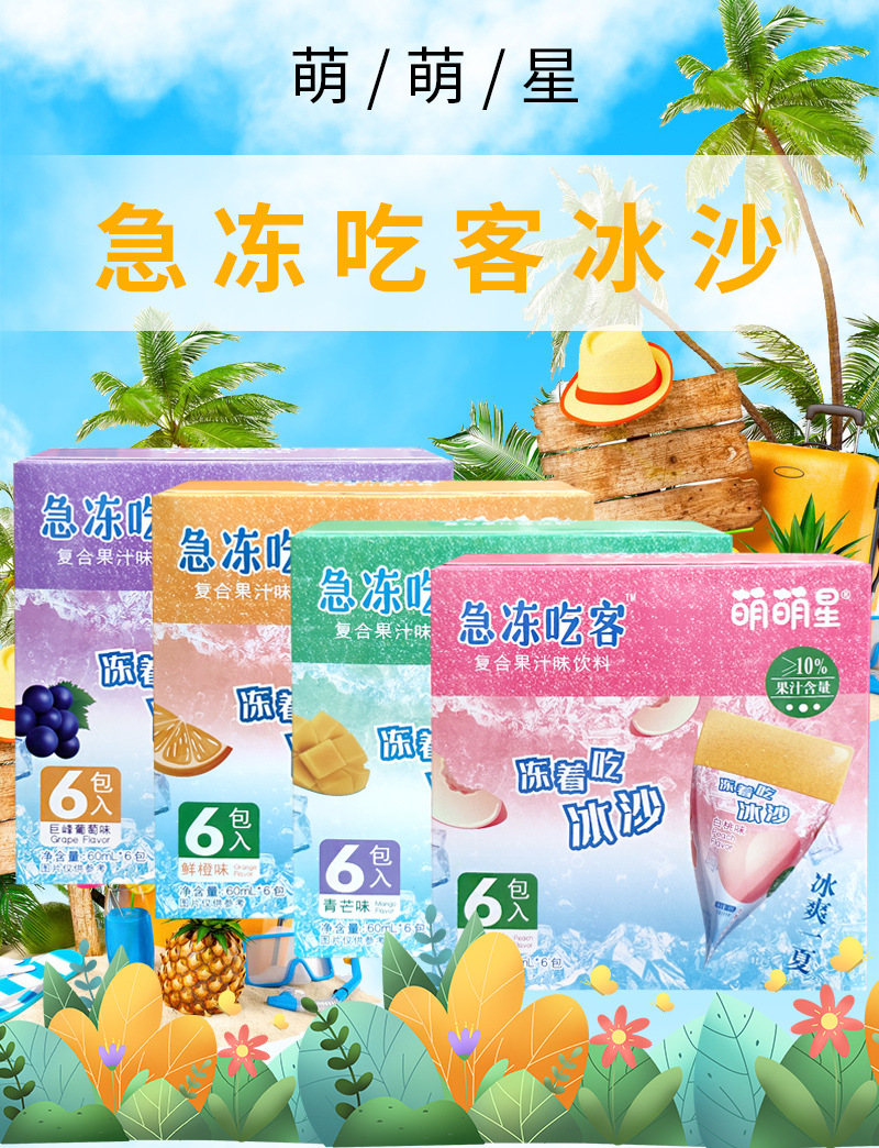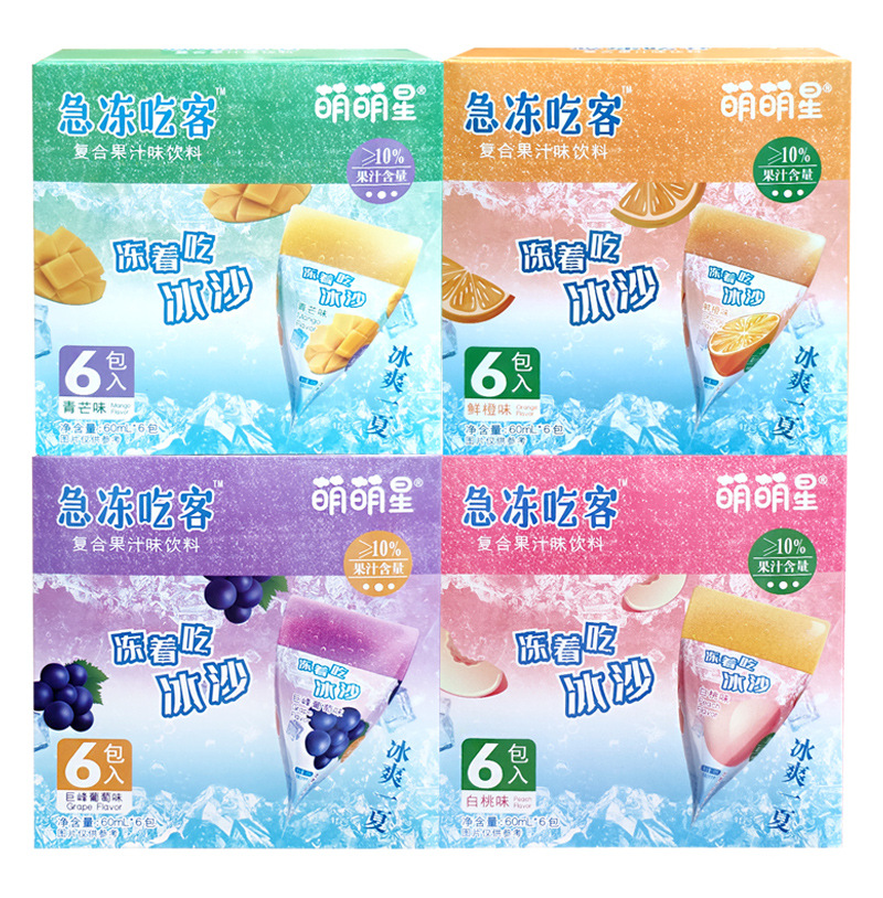 萌萌星急冻吃客复合果汁味饮料60ML*6袋冰棒葡萄白桃鲜橙青芒果味