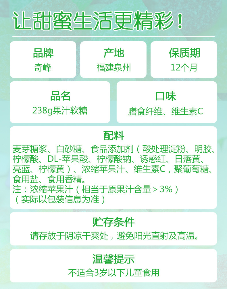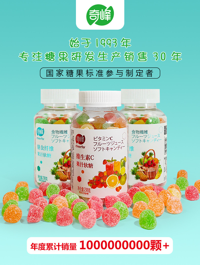 奇峰维生素C膳食纤维果汁软糖儿童橡皮糖混合多口味办公软糖238g