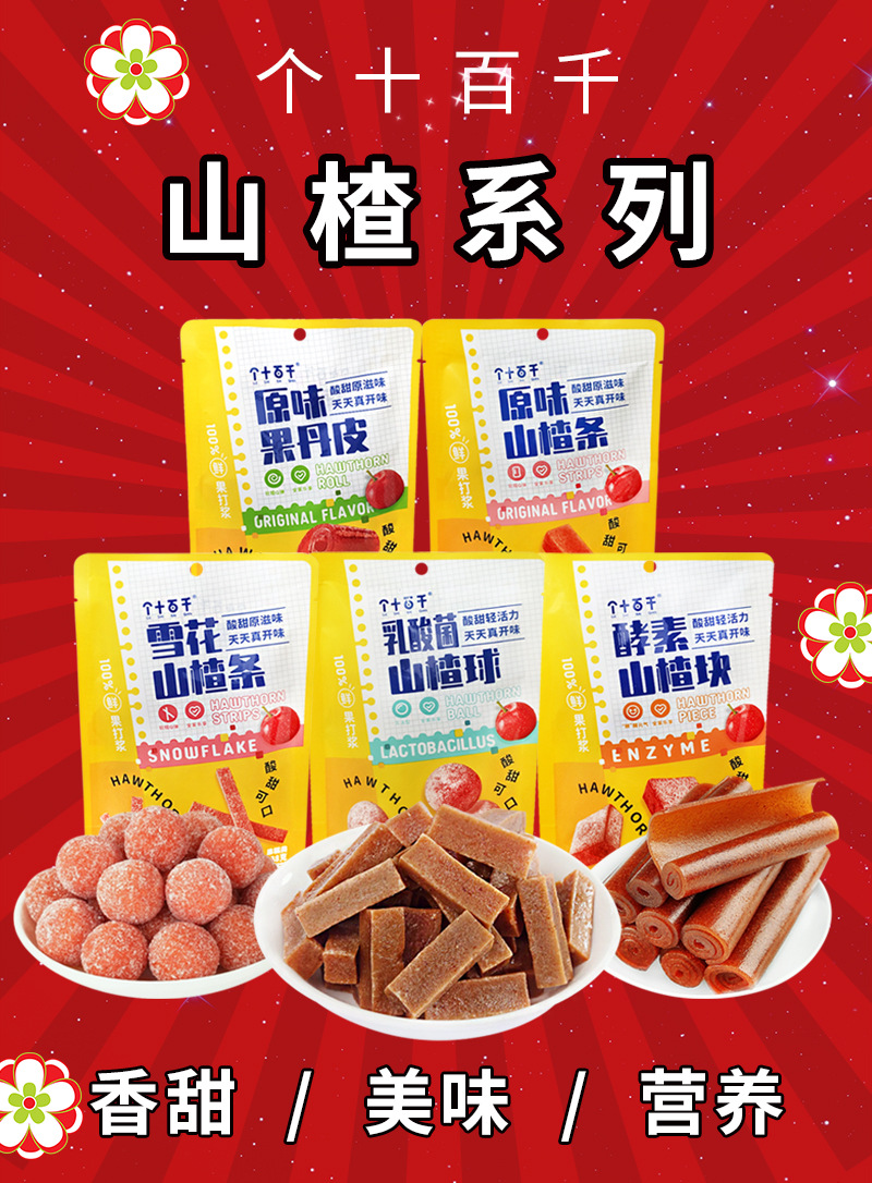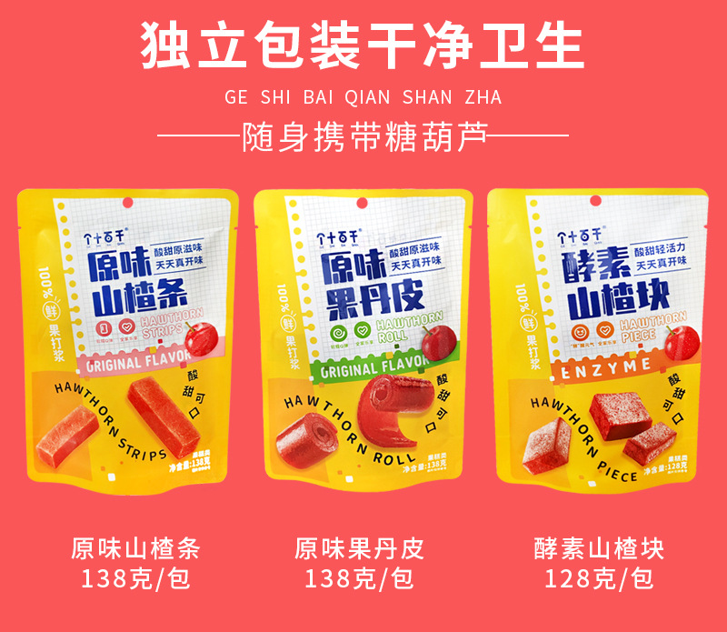个十百千原味果丹皮138g袋装山楂糖球干果解馋小零食品山楂批发
