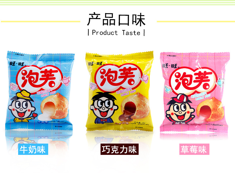 旺旺泡芙球16g草莓牛奶巧克力味夹心饼干网红休闲零食品小吃超市