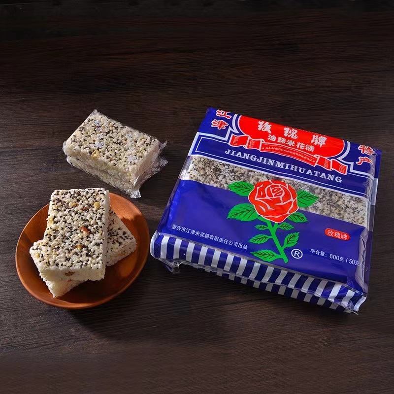 玫瑰牌油酥米花糖400g500g600g中华老字号独立包装零食重庆特产