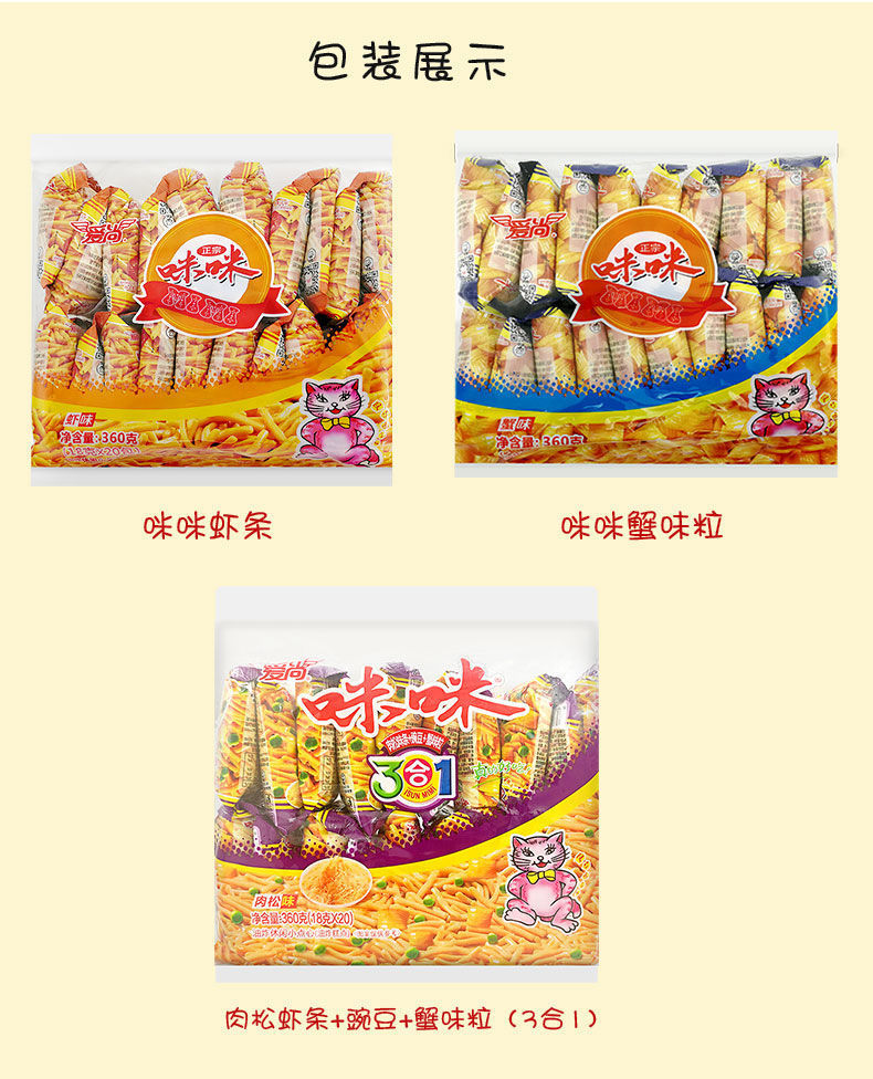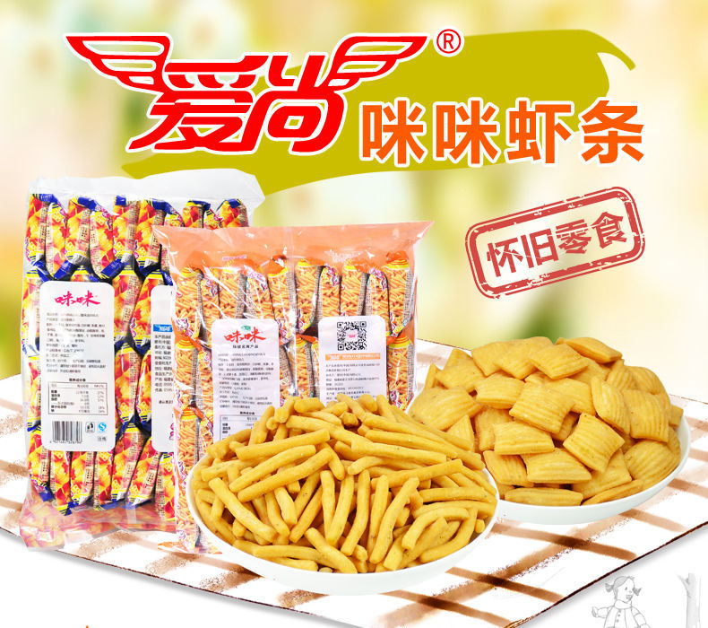 爱尚咪咪虾条整箱批发蟹味粒8090怀旧零食大礼包膨化食品薯条散装