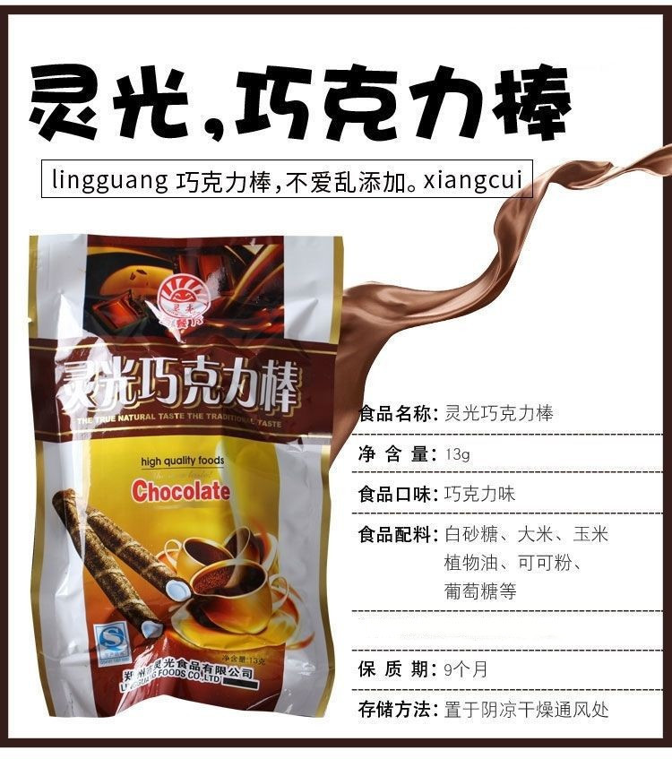 灵光巧克力棒80后怀旧膨化巧克力糖果儿童学生休闲网红小零食批发
