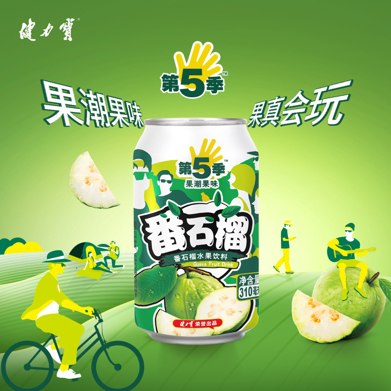 健力宝第五季番石榴果汁饮料批发310ml罐芒果水蜜桃饮品易拉罐装