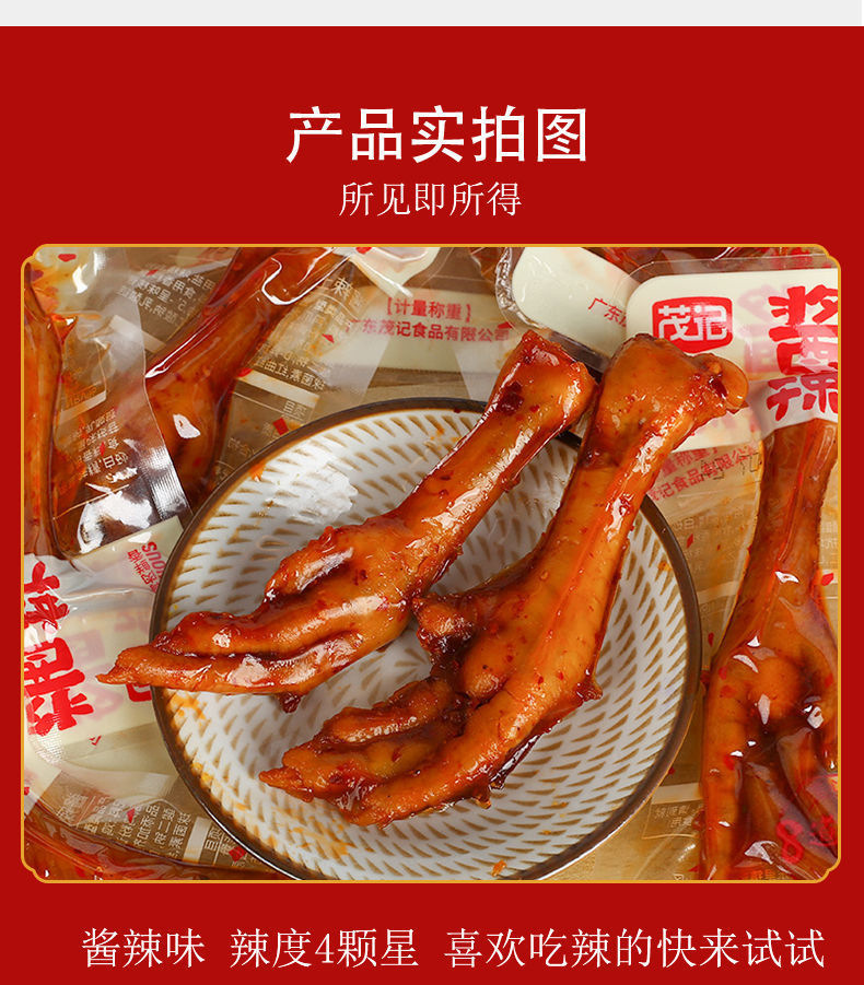 茂记盐焗鸡爪香辣酱香凤爪非无骨鸡爪小吃休闲网红小零食独立包装