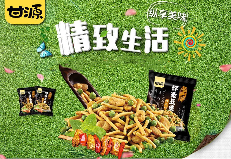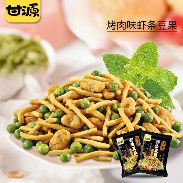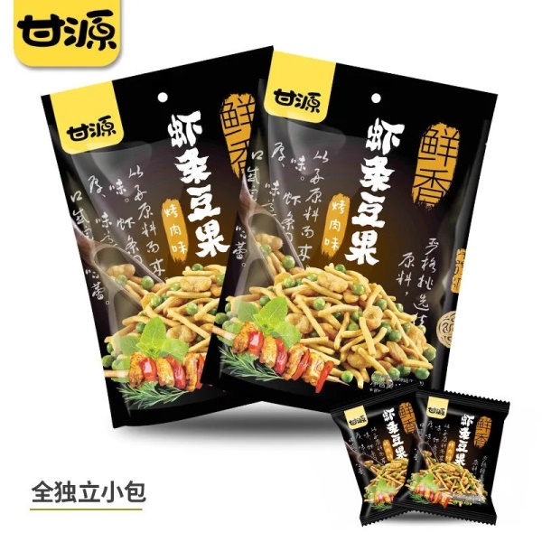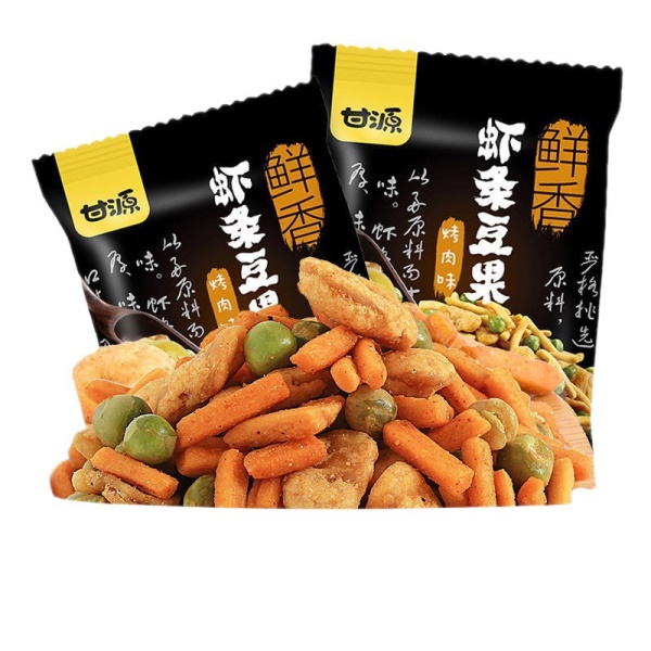 甘源虾条豆果网红休闲坚果薯片零食学生追剧膨化小吃超市同款批发