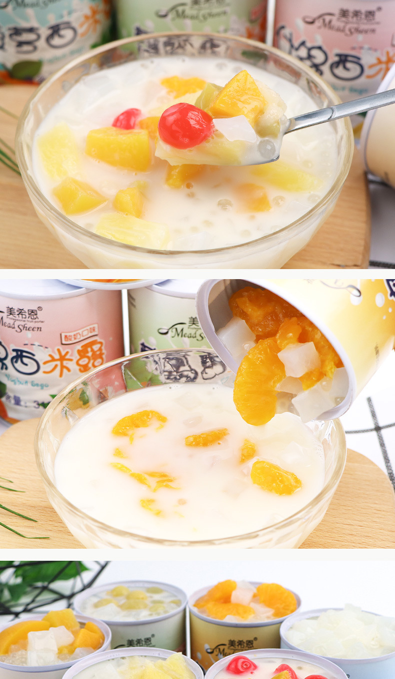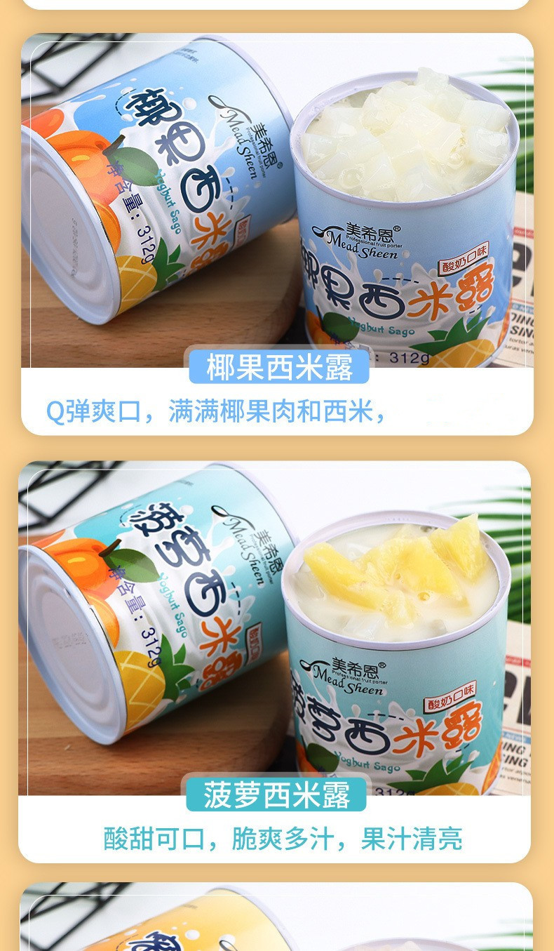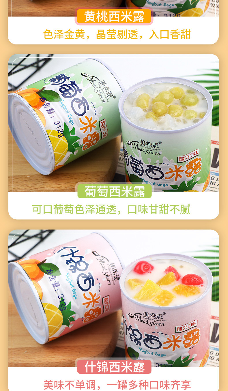 美希恩酸奶西米露罐头水果椰果什锦黄桃罐头混装休闲食品整箱批发