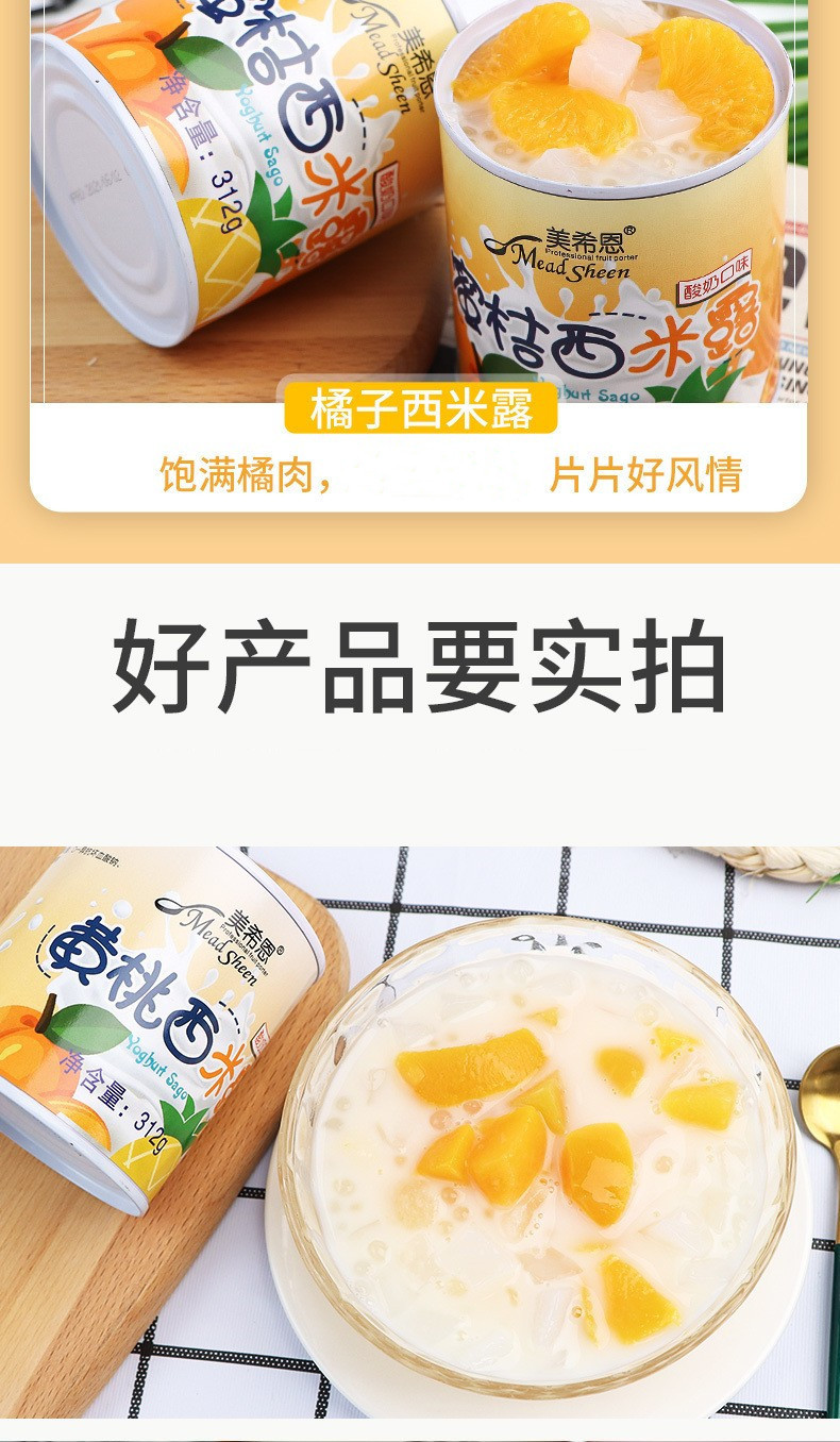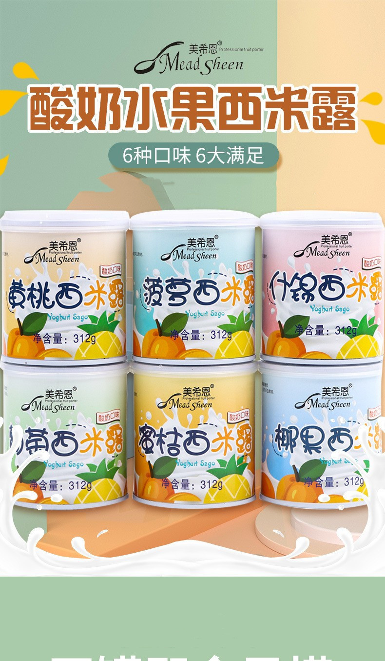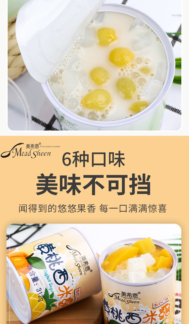 美希恩酸奶西米露罐头水果椰果什锦黄桃罐头混装休闲食品整箱批发